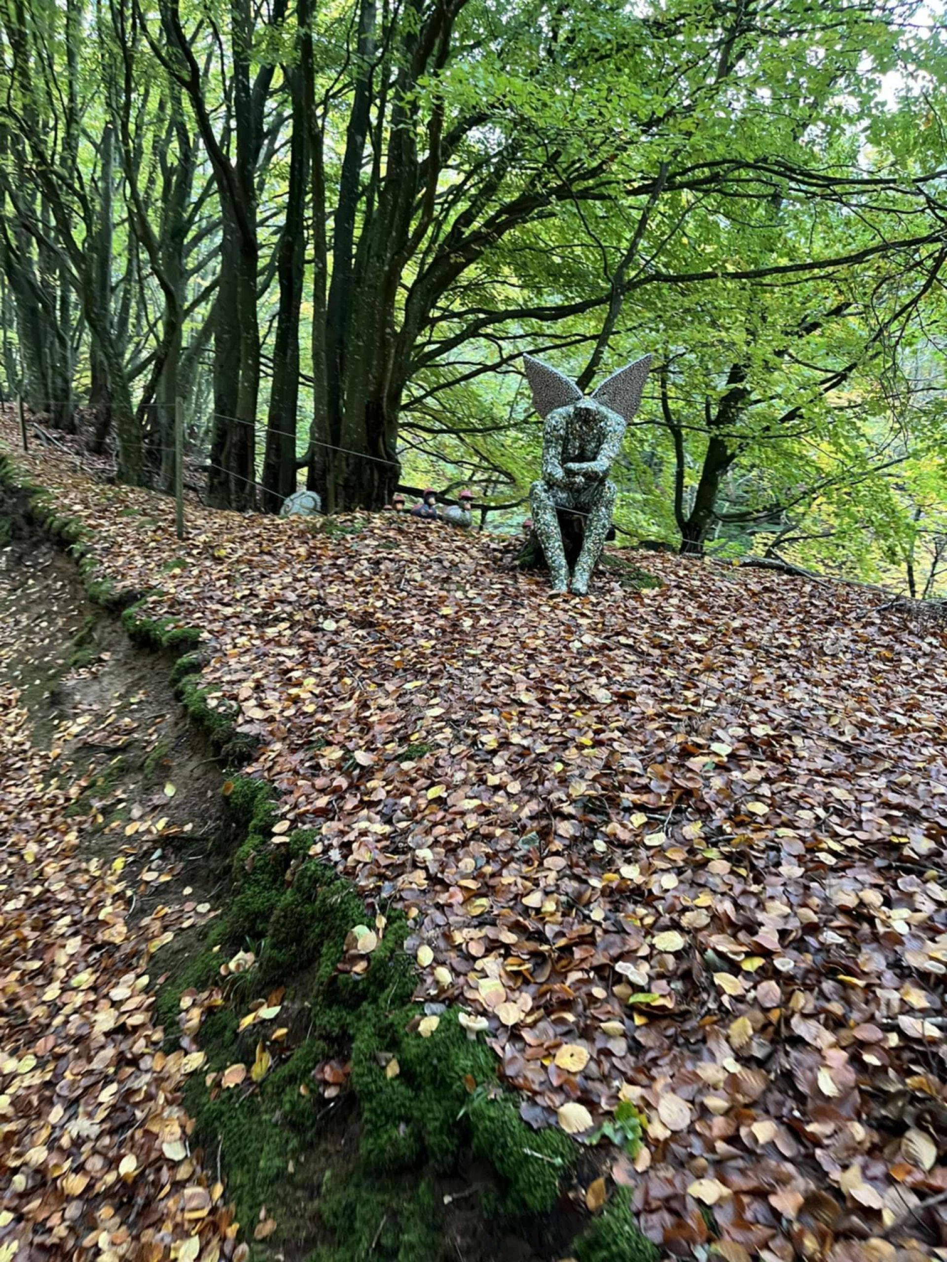 Vi nød efterårsskoven i fulde drag og så endda kunstværker inde i skoven 😍